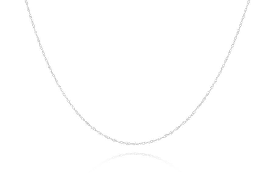 CORRENTE BANHADA EM PRATA LEVE, ELO SINGAPURA 1,50mm ESPESSURA, 40cm COMPRIMENTO, EXTENSOR 5cm COMPRIMENTO E PESO 2g