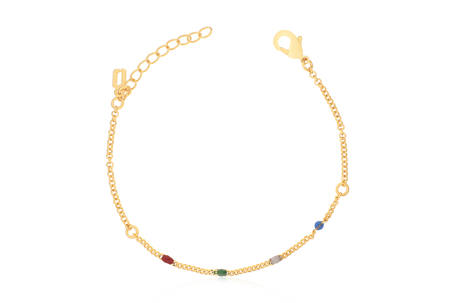 PULSEIRA BANHADA EM OURO, OLHO GREGO 11mm DIÂMETRO, QUALQUER COR, ELO VENEZIANA 0,80mm, LINHA TRADICIONAL