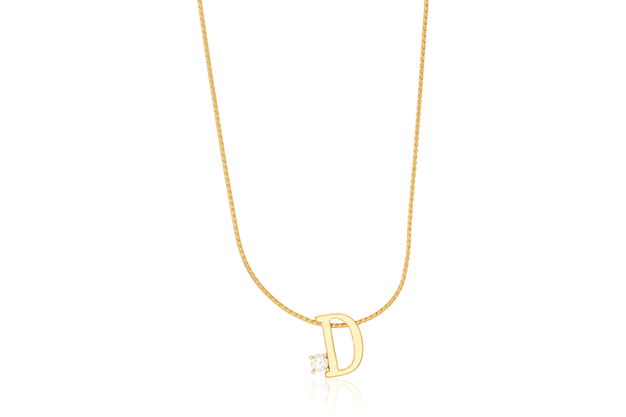 GARGANTILHA BANHADA EM OURO, VENEZIANA 0,80mm, 40cm COMPRIMENTO, LETRA 11mm ALTURA, CORAÇÃO 9mm LARGURA E PONTO DE LUZ 3mm