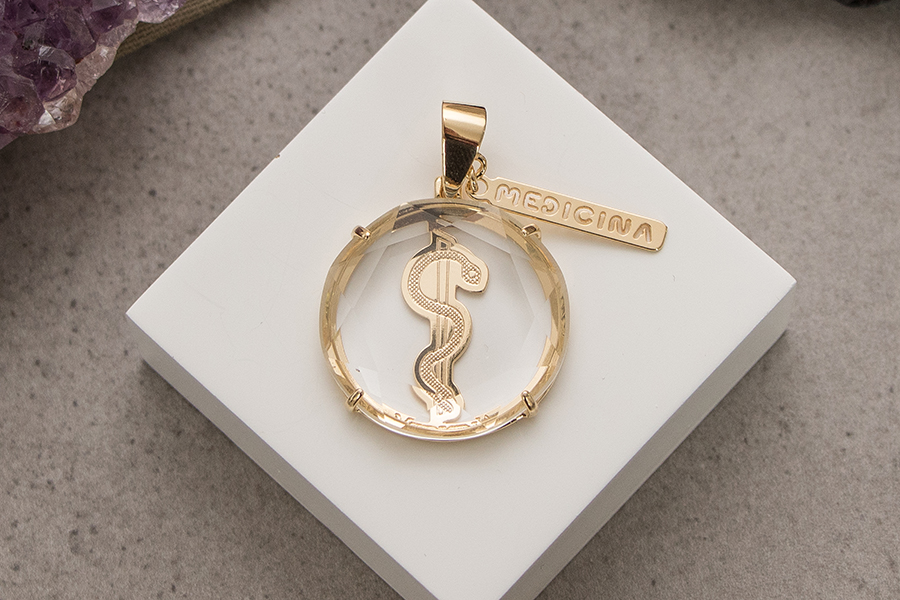 PINGENTE BANHADO EM OURO CRISTAL 16mm DIÂMETRO, BONECOS