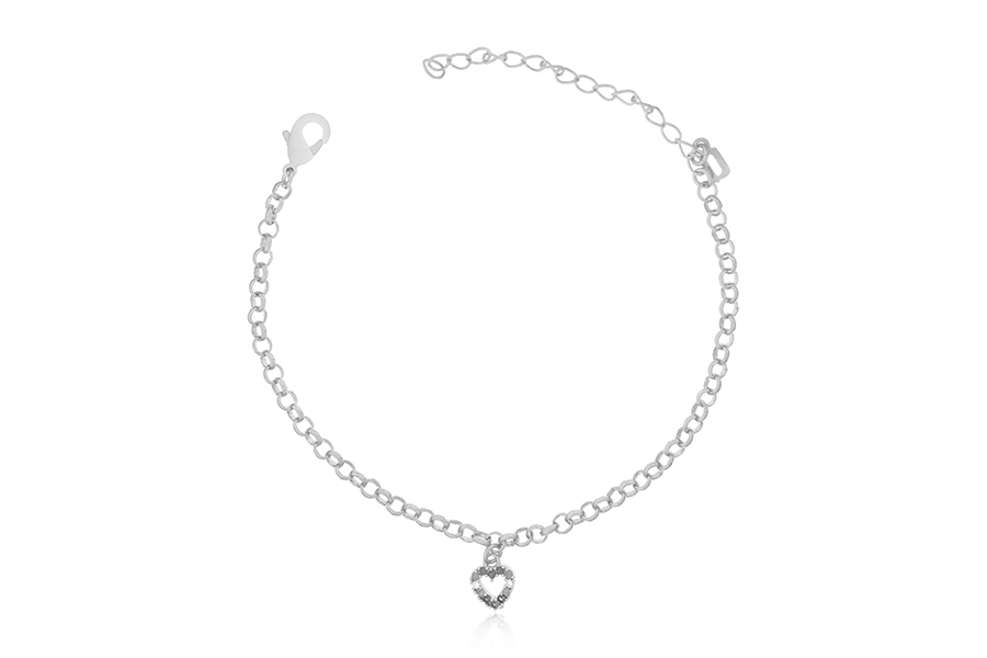 BRACELETE BANHADO EM RÓDIO BRANCO, CORAÇÃO 6,80mm DIÂMETRO, 5mm LARGURA, PARA ZIRCÔNIA BRANCA OU COLORIDA