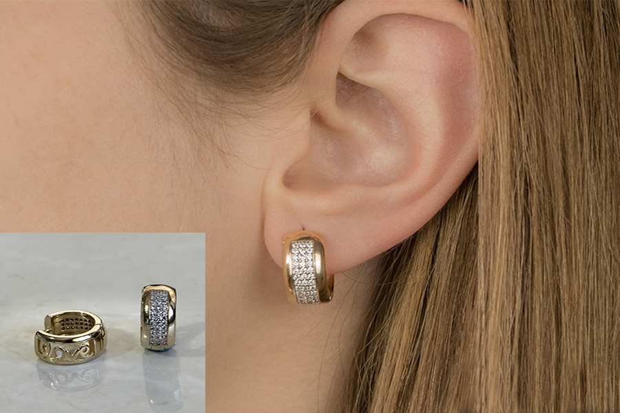 BRINCO BANHADO EM OURO, ARGOLA CRAVEJADA 23mm DIÂMETRO, 6,80mm LARGURA