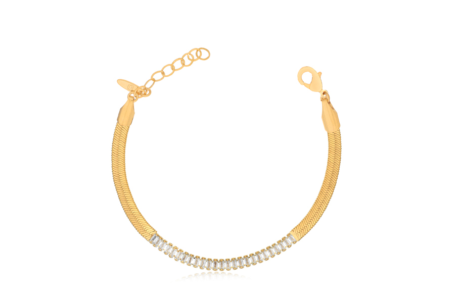 BRACELETE BANHADO EM OURO, OVAL 4mm LARGURA E 6,50cm COMPRIMENTO, COM FECHO, LISO OU ACETINADO