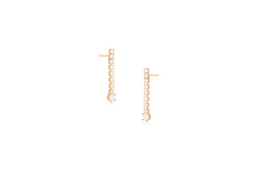 BRINCO BANHADO EM OURO, 23mm COMPRIMENTO COM ZIRCÔNIAS BRANCAS OU COLORIDAS