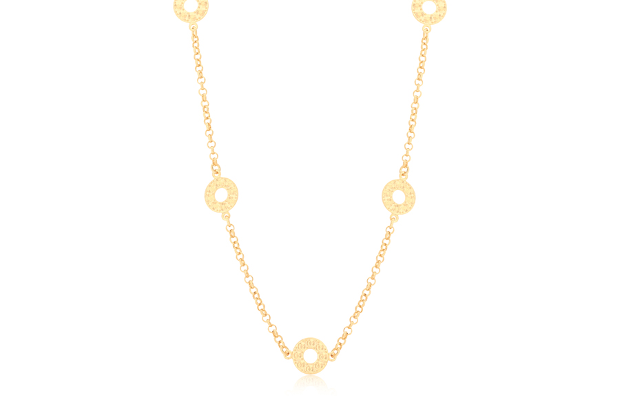 GARGANTILHA BANHADA EM OURO, ELO 2,20mm, 80cm COMPRIMENTO, PONTO DE LUZ E CORAÇÃO 12,50mm LARGURA