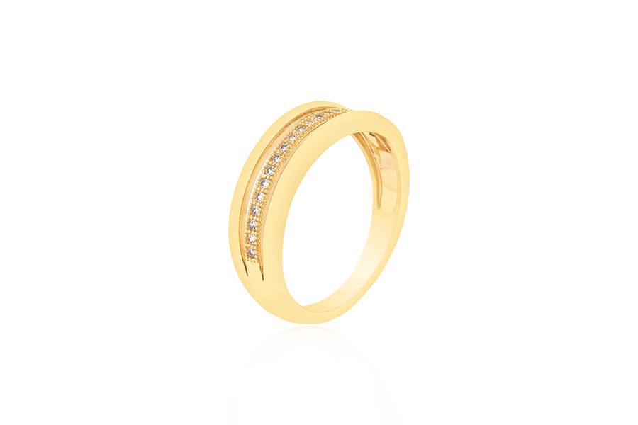 ANEL BANHADO EM OURO, APARADOR DUPLO, COM 2 FILEIRAS DE ZIRCÔNIAS CADA