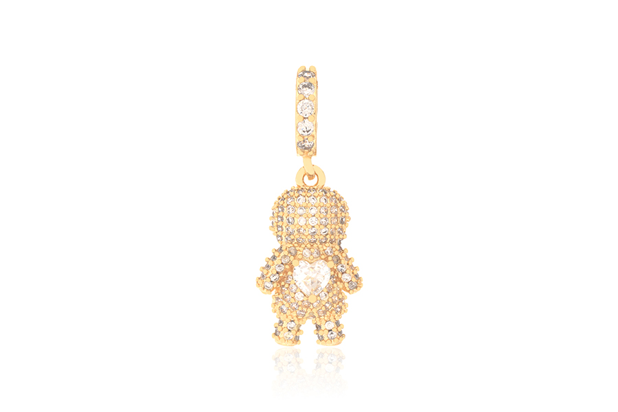 PINGENTE BANHADO EM OURO CRISTAL 16mm DIÂMETRO, BONECOS