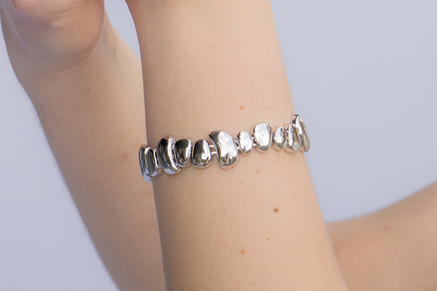 PULSEIRA BANHADA EM RÓDIO BRANCO, METADE COM ELO PORTUGUÊS 5mm E METADE COM ELO REDONDO 10mm E CORRENTE, 22cm COMPRIMENTO SEM EXTENSOR
