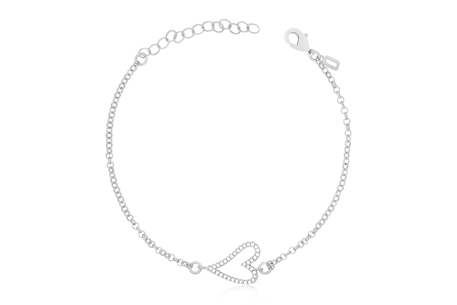 BRACELETE BANHADO EM RÓDIO BRANCO, CORAÇÃO 6,80mm DIÂMETRO, 5mm LARGURA, PARA ZIRCÔNIA BRANCA OU COLORIDA