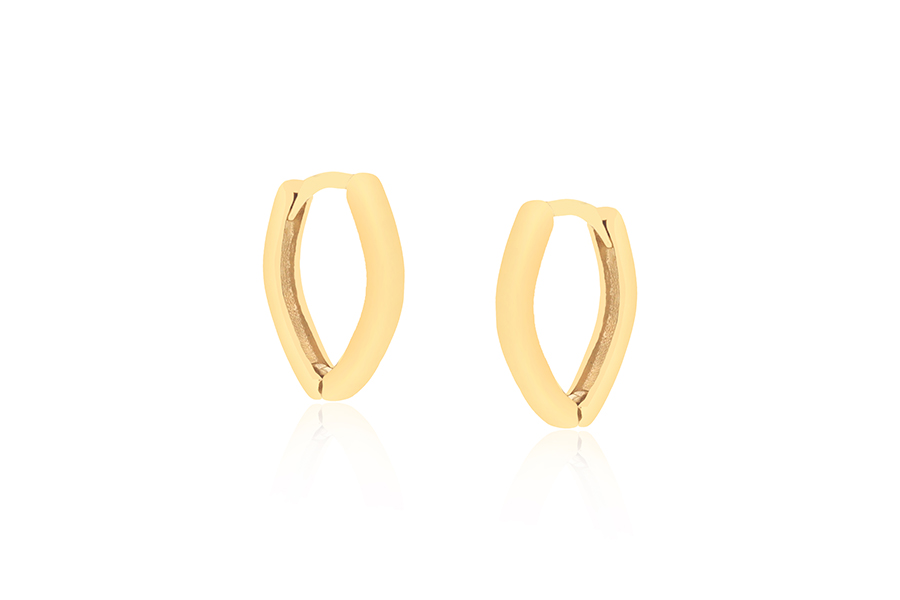 BRINCO BANHADO EM OURO, MEIA ARGOLA, 16mm ALTURA E 10,50mm LARGURA, LISO OU ACETINADO