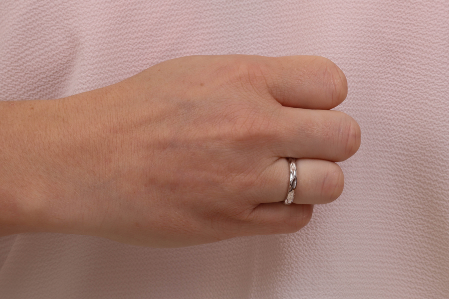 ANEL BANHADO EM RÓDIO BRANCO, SOLITÁRIO 3mm, COM O ARO TRABALHADO