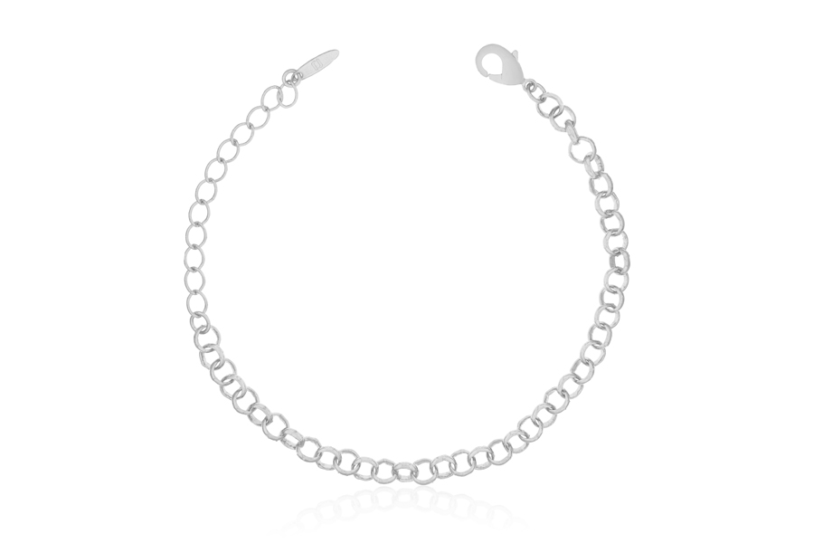 PULSEIRA BANHADA EM RÓDIO BRANCO, METADE COM ELO PORTUGUÊS 5mm E METADE COM ELO REDONDO 10mm E CORRENTE, 22cm COMPRIMENTO SEM EXTENSOR