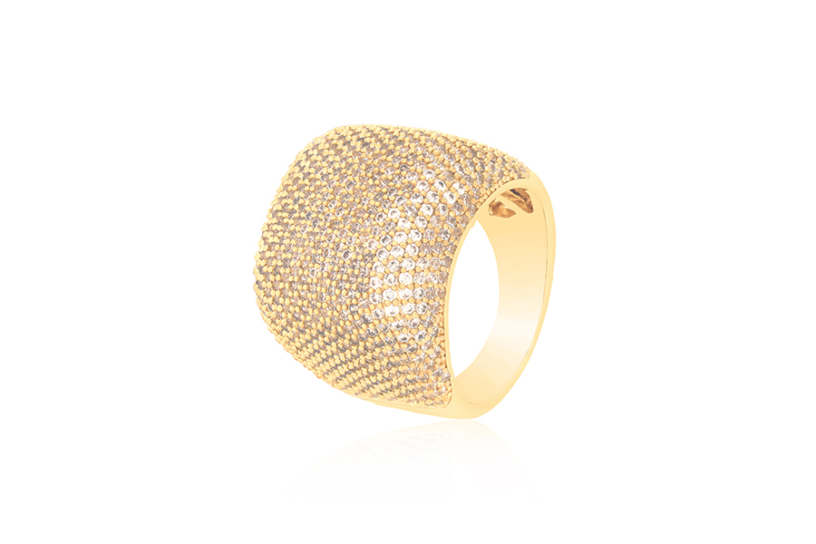 ANEL BANHADO EM OURO, COM 30 ZIRCÔNIAS