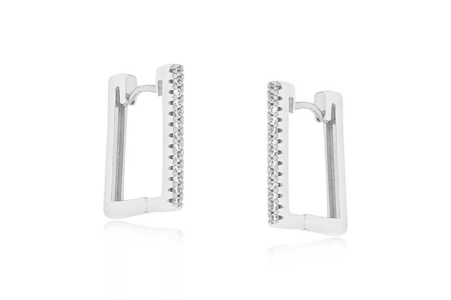 BRINCO BANHADO EM RÓDIO BRANCO, 15mm ALTURA COM 21 ZIRCÔNIAS