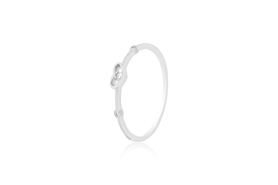 ANEL PRATA LEVE 1 FILEIRA DE ZIRCÔNIAS E LATERAIS COM CORAÇÕES VAZADOS