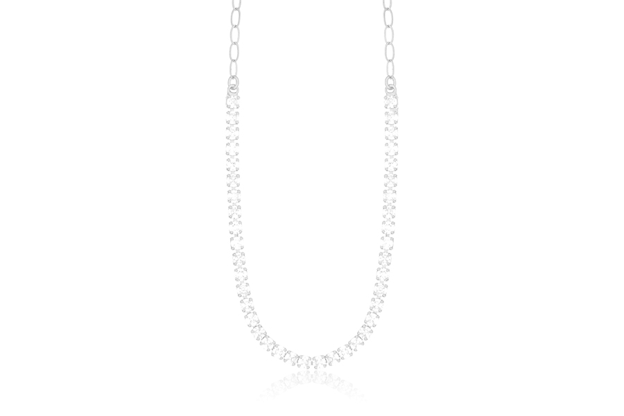 GARGANTILHA EM PRATA, ELO VENEZIANA 0,60mm, 40cm COMPRIMENTO, EXTENSOR 5cm, PONTO DE LUZ 5mm, CRAVAÇÃO INGLESA, COM BANHO DE RÓDIO BRANCO, COLEÇÃO AURA