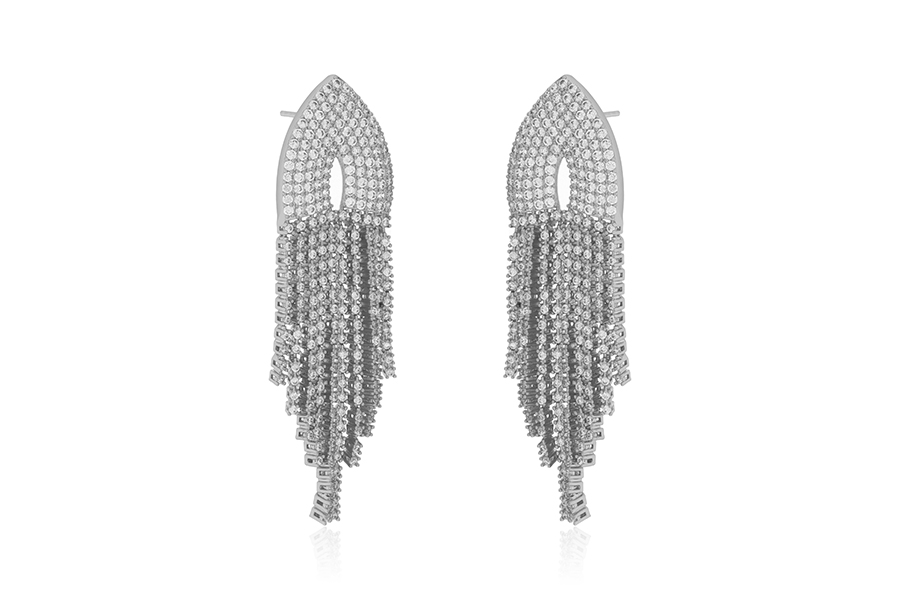 BRINCO BANHADO EM RÓDIO BRANCO, 18,50mm ALTURA COM 115 ZIRCÔNIAS