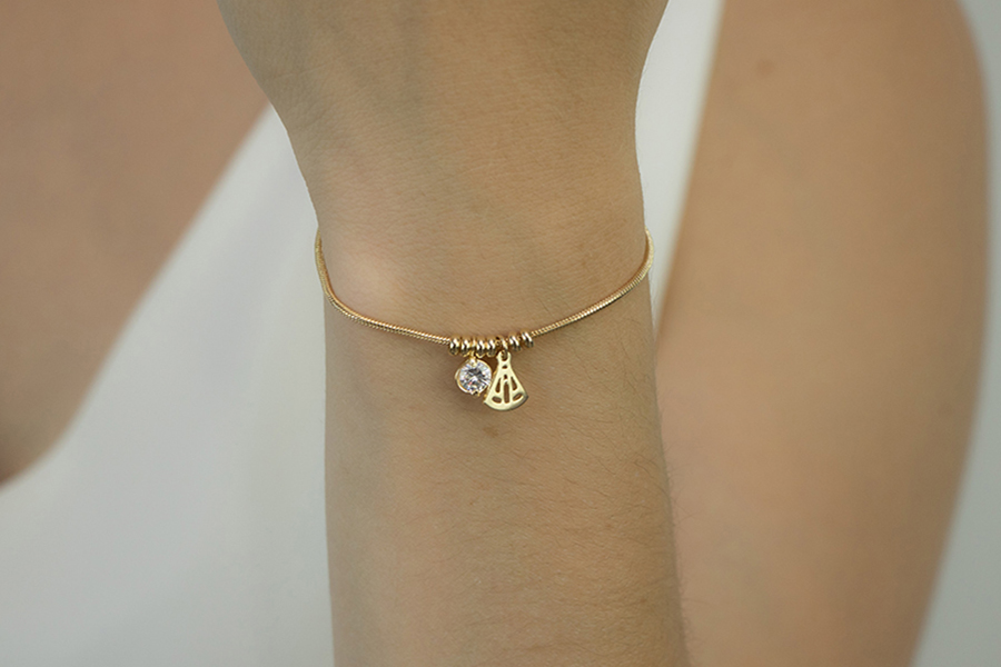 PULSEIRA BANHADA EM OURO, ELO 1,20mm COM BOLINHA OVAL, 17cm COMPRIMENTO, PONTO DE LUZ 4,50mm, TE AMO TITIA 14mm DIÂMETRO COM CORAÇÃO