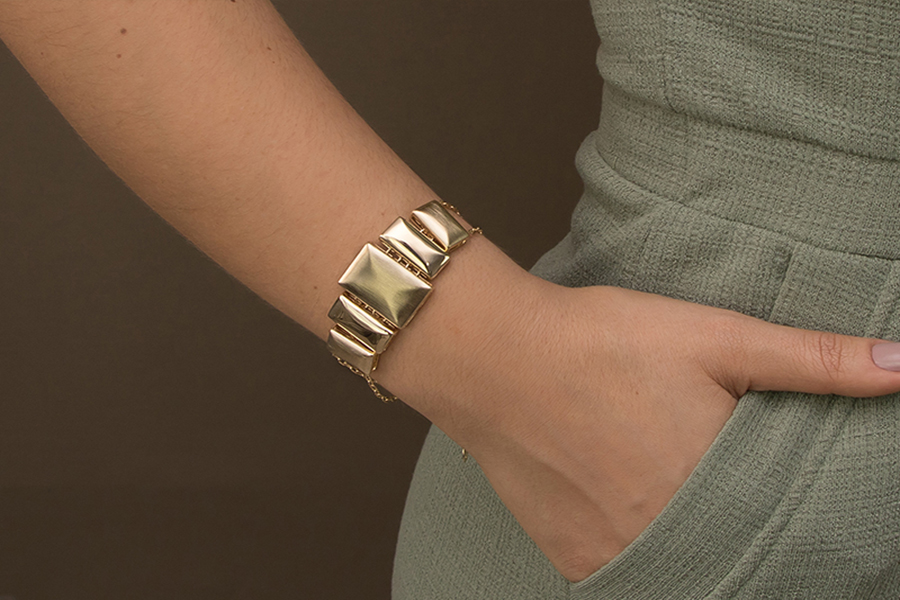 BRACELETE BANHADO EM OURO, OVAL 4mm LARGURA E 6,50cm COMPRIMENTO, COM FECHO, LISO OU ACETINADO