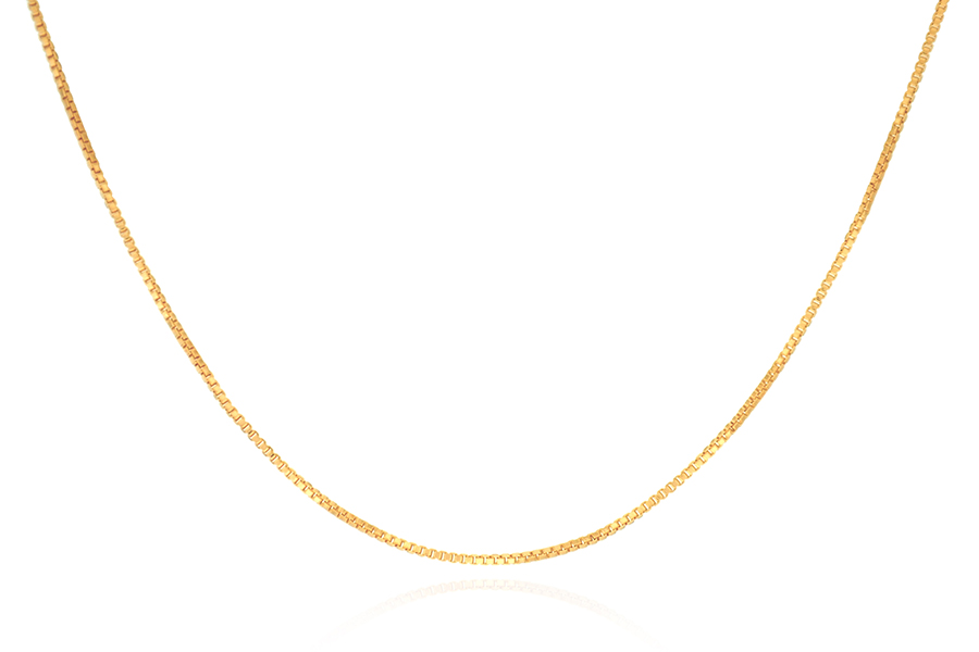 CORRENTE BANHADA EM OURO, ELO VENEZIANA 0,80mm, 45cm COMPRIMENTO, EXTENSOR 5cm COMPRIMENTO E PESO 2,20g
