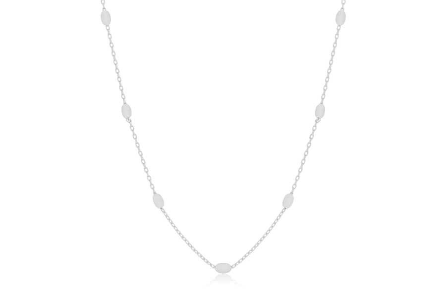 CORRENTE BANHADA EM RÓDIO BRANCO, ELO VENEZIANA 0,60mm, 40cm COMPRIMENTO, EXTENSOR 5cm COMPRIMENTO E PESO 1,50g