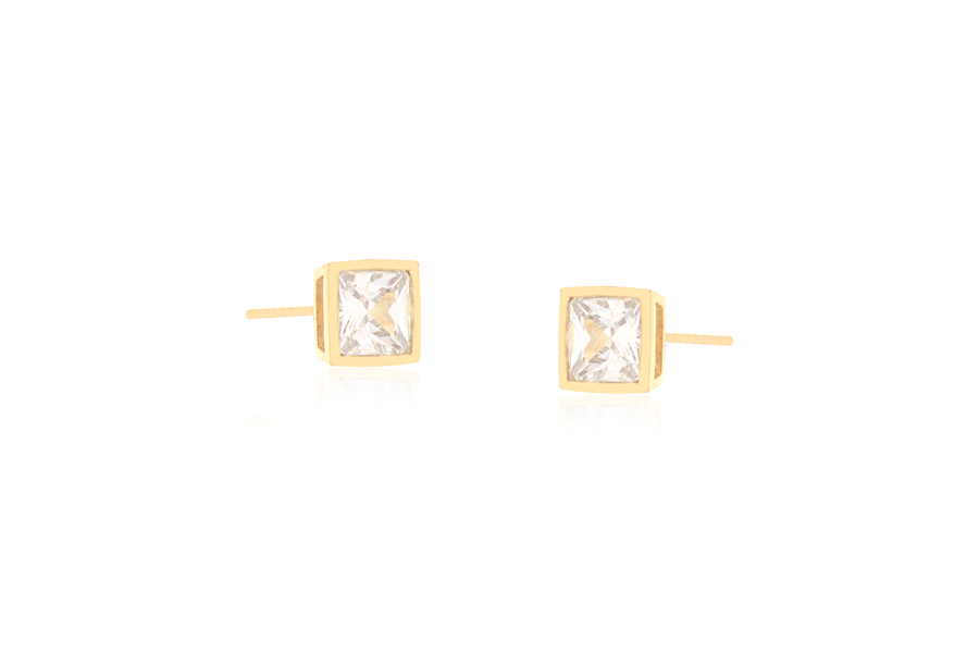 BRINCO BANHADO EM OURO, ZIRCÔNIA REDONDA 8mm, PARA QUALQUER COR DE PEDRA