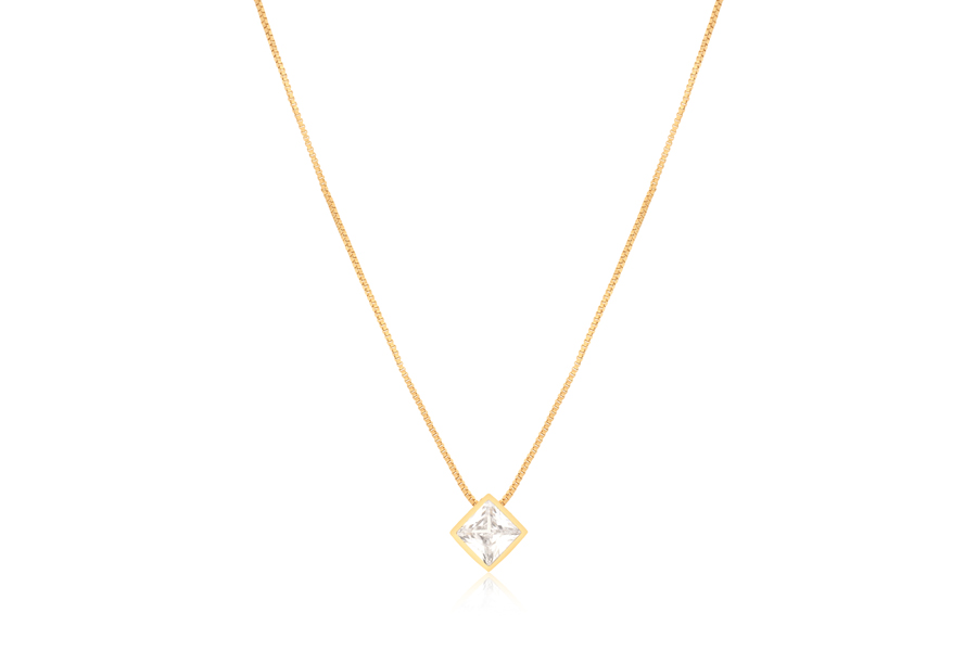 GARGANTILHA BANHADA EM OURO, VENEZIANA 0,80mm, 40cm COMPRIMENTO E ZIRCÔNIA QUADRADA 8mm, PARA QUALQUER COR DE PEDRA