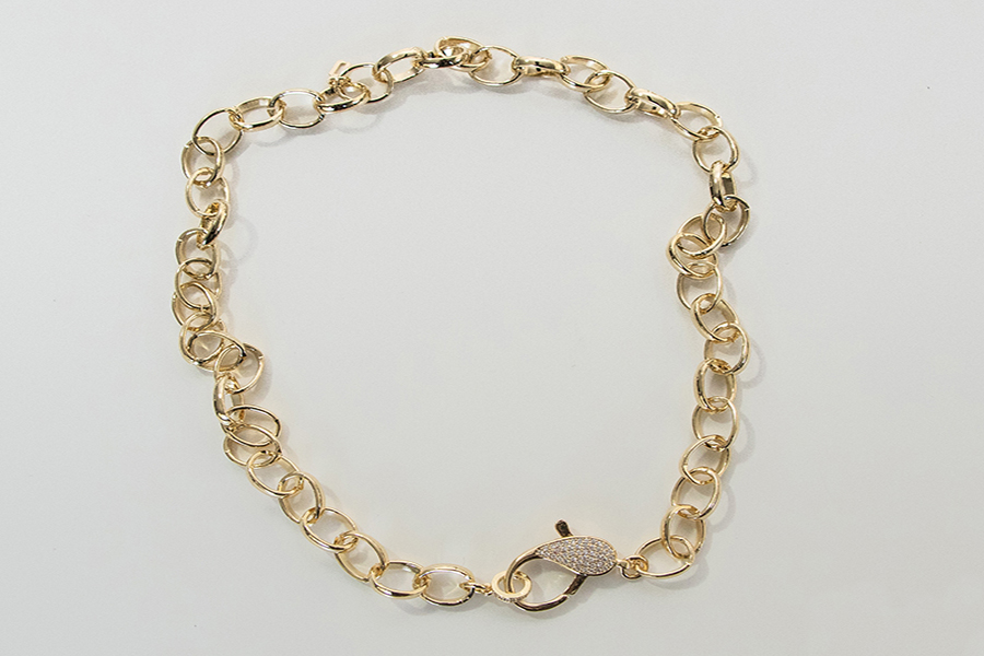 CHOKER BANHADA EM OURO, ELO 1,20mm LARGURA, 35cm COMPRIMENTO E CORAÇÃO 4,50mm LARGURA, QUALQUER COR DE PEDRA