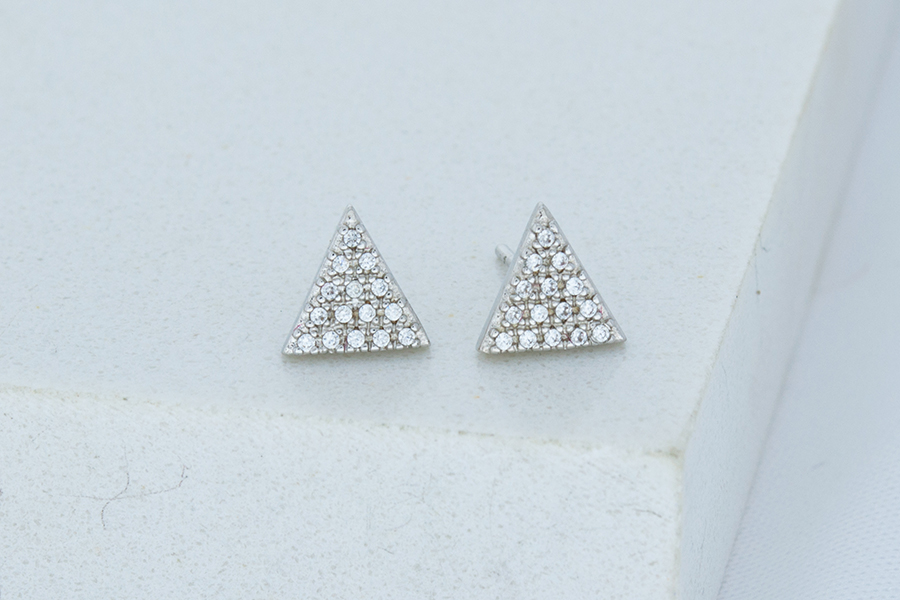 BRINCO EM PRATA, TRIÂNGULO 8mm, COM BANHO DE RÓDIO BRANCO, COLEÇÃO AURA