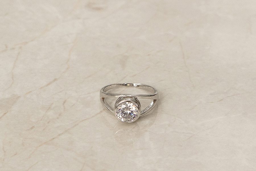 ANEL BANHADO EM RÓDIO BRANCO, SOLITÁRIO 9mm, LINHA TRADICIONAL