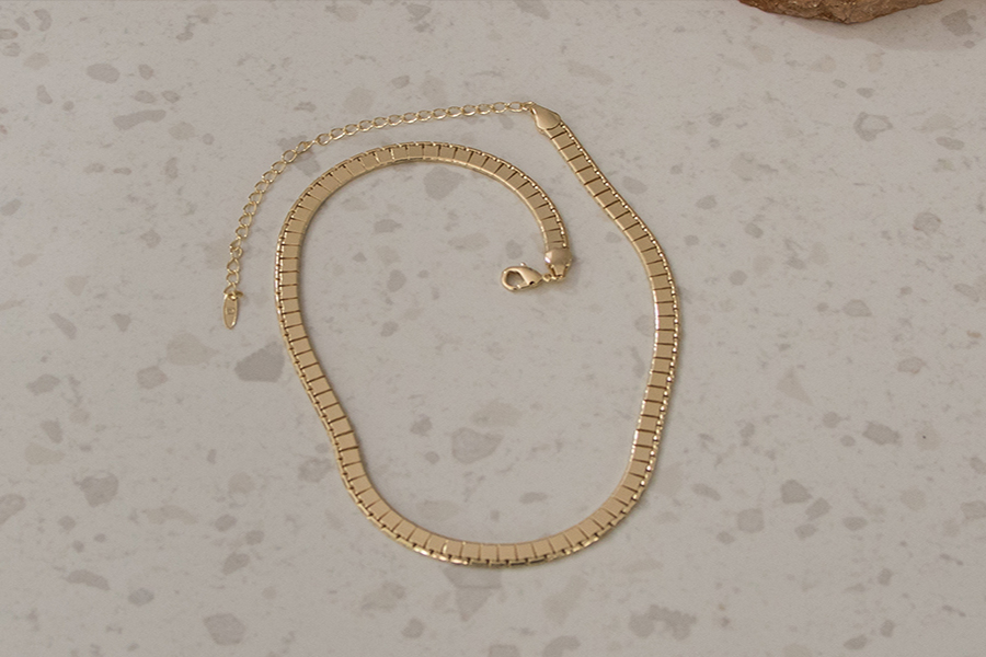 GARGANTILHA BANHADA EM OURO, NAVETE 3,50mm LARGURA, ELO VENEZIANA 0,80mm, 40cm COMPRIMENTO, EXTENSOR 5cm