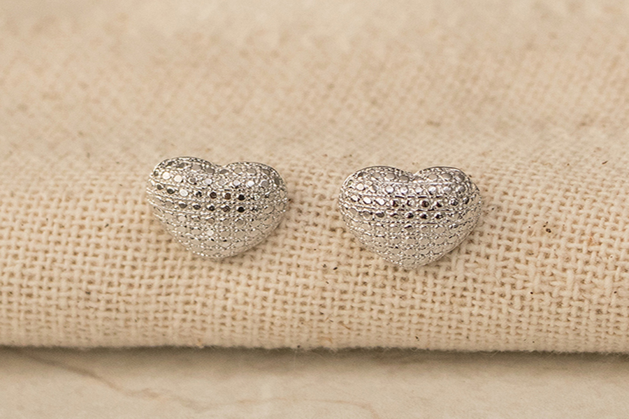BRINCO EM PRATA, PONTO DE LUZ CORAÇÃO 4mm ALTURA