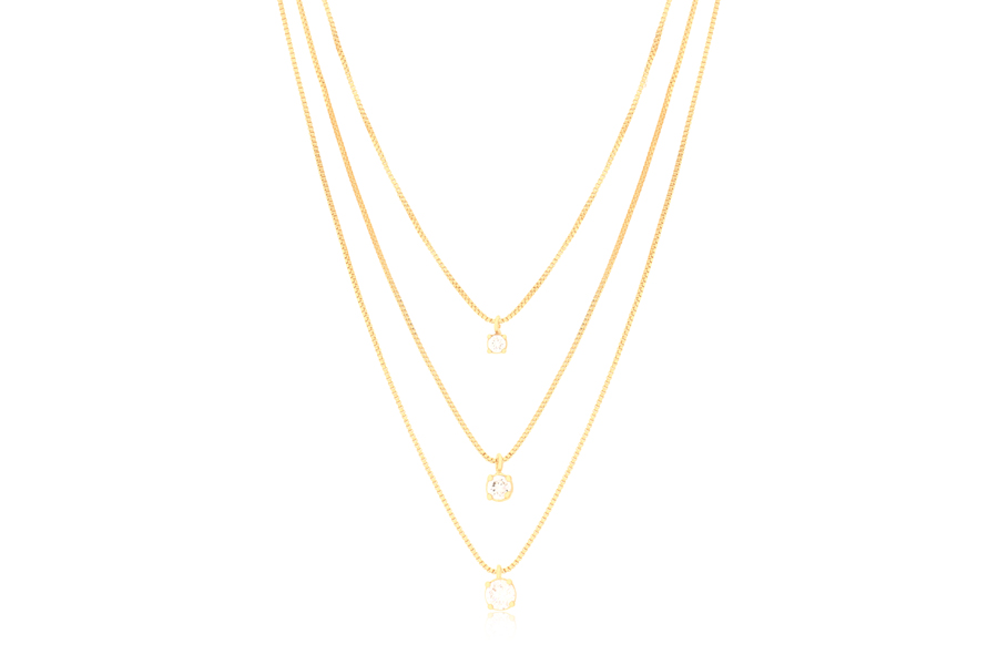 GARGANTILHA BANHADA EM OURO, GRAVATA, ELO PORTUGUÊS 2mm, E ZIRCÔNIA REDONDA, QUADRADA E CORAÇÃO