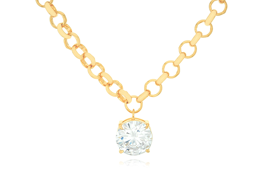 GARGANTILHA BANHADA EM OURO, ELO VENEZIANA 0,80mm, 42cm COMPRIMENTO E ZIRCONIA GOTA 10X7mm, PARA QUALQUER COR DE PEDRA
