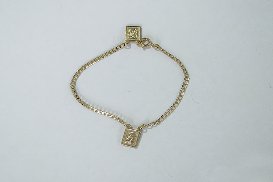 PULSEIRA BANHADA EM OURO, ELO 5mm LARGURA, 18cm COMPRIMENTO E MEDALHA PAI NOSSO 26mm DIÂMETRO
