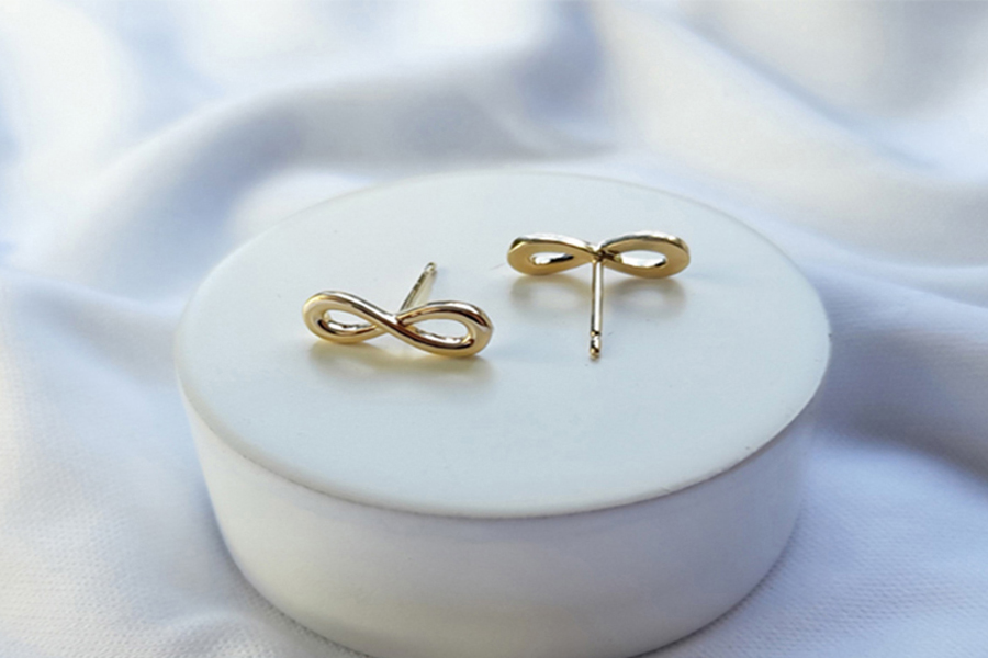 BRINCO BANHADO EM OURO, INFINITO 11mm COMPRIMENTO, LINHA TRADICIONAL