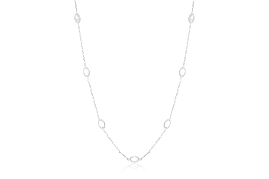 GARGANTILHA EM PRATA, ELO VENEZIANA 0,60mm, 40cm COMPRIMENTO, EXTENSOR 5cm, PONTO DE LUZ 5mm, CRAVAÇÃO INGLESA, COM BANHO DE RÓDIO BRANCO, COLEÇÃO AURA