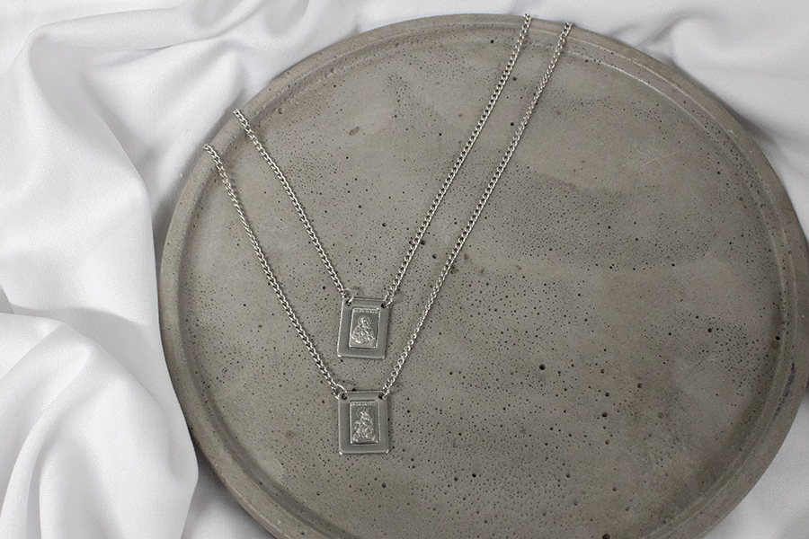 GARGANTILHA BANHADA EM PRATA LEVE, MÃO DE FÁTIMA 13mm ALTURA, ELO SINGAPURA 1,50mm ESPESSURA, 40cm COMPRIMENTO