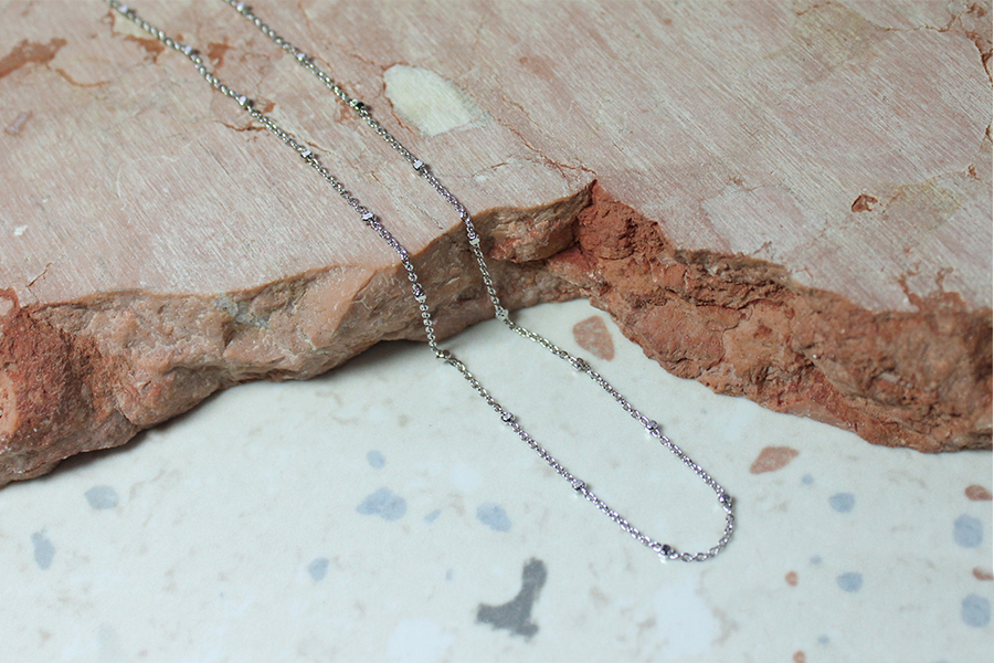 CHOKER BANHADA EM PRATA LEVE, 35cm COMPRIMENTO, TRIPLA, FIO COM ESFERAS 2,50mm E 3cm ENTRE ELAS