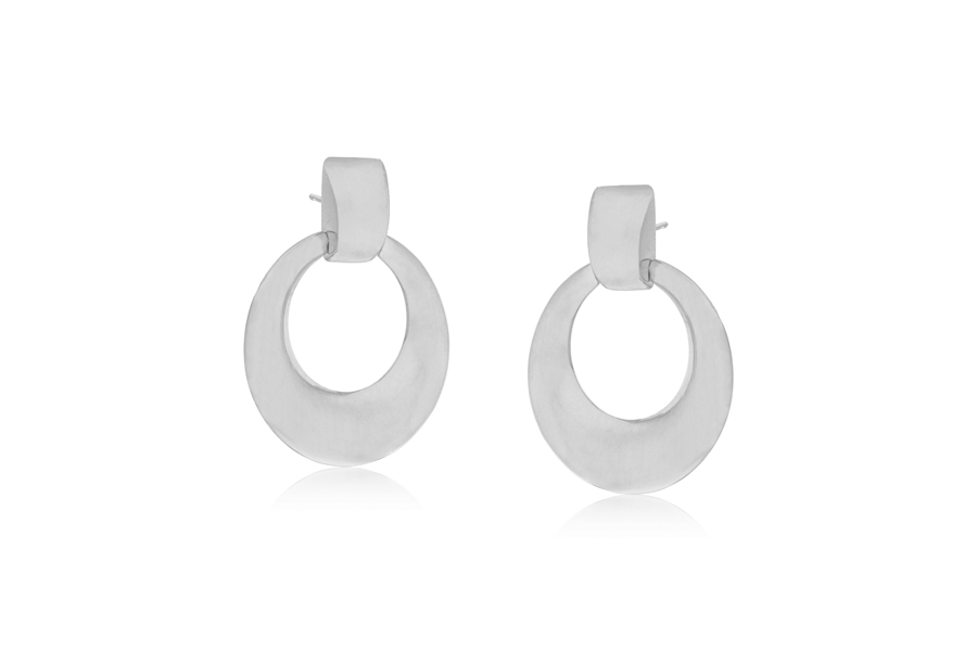 BRINCO BANHADO EM RÓDIO BRANCO, ARGOLINHA IRREGULAR, 19mm ALTURA, LISA OU ACETINADA
