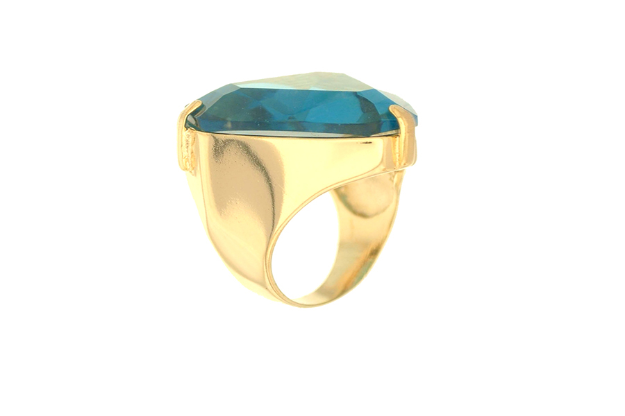ANEL BANHADO EM OURO, CRISTAL, GOTA 18x13mm