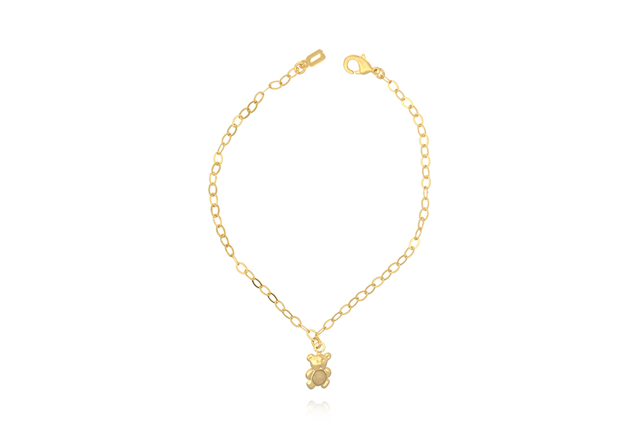 PULSEIRA INFANTIL BANHADA EM OURO, VENEZIANA LONGA 1,50mm ESPESSURA E CHAPINHA COM MENINO 24mm COMPRIMENTO