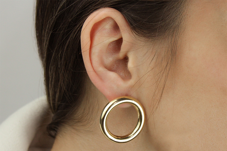 BRINCO BANHADO EM OURO, ARGOLA VAZADA 22mm DIÂMETRO E 10mm LARGURA