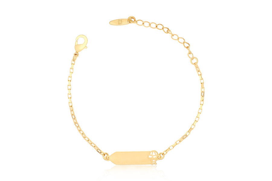 PULSEIRA INFANTIL BANHADA EM OURO, VENEZIANA LONGA 1,50mm ESPESSURA E CHAPINHA COM MENINO 24mm COMPRIMENTO