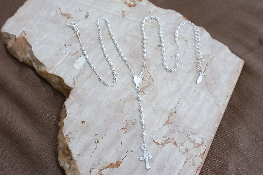 ESCAPULÁRIO EM PRATA, INFANTIL, SAGRADO CORAÇÃO DE JESUS E NOSSA SENHORA DO CARMO, RETANGULAR 6,30mm LARGURA, ELO GRUMET, 45cm COMPRIMENTO, COM FECHO