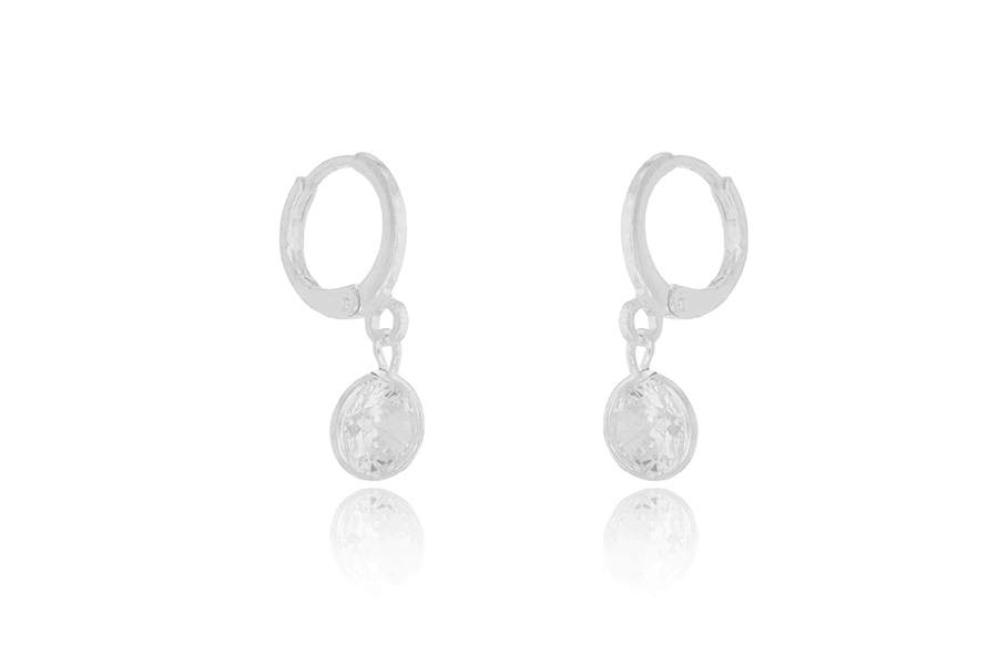 BRINCO BANHADO EM RÓDIO BRANCO, PONTO DE LUZ 4mm, CRAVAÇÃO INGLESA