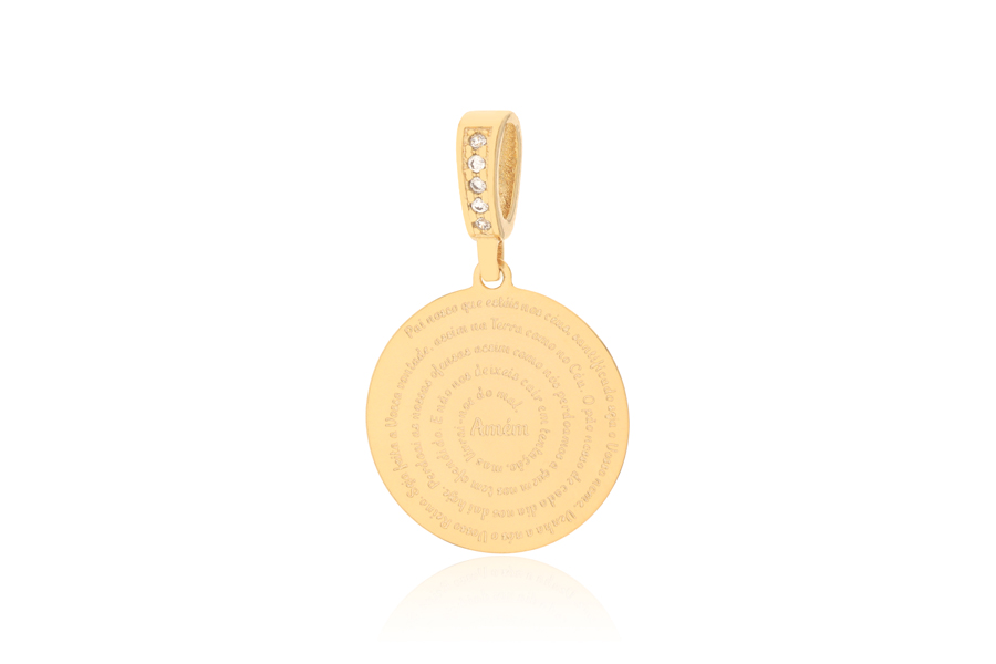 PINGENTE BANHADO EM OURO CRISTAL 16mm DIÂMETRO, BONECOS