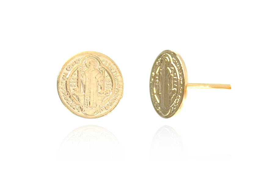 BRINCO BANHADO EM OURO, 29mm DE ALTURA, TARRAXA ASA, LISO OU ACETINADO, COLEÇÃO ALQUIMIA