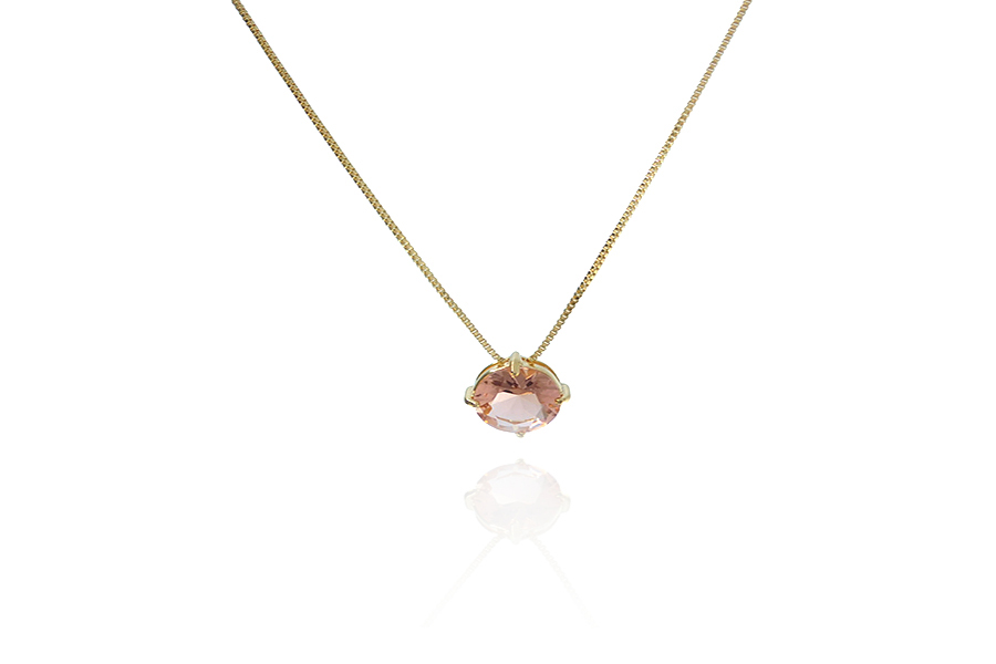 GARGANTILHA BANHADA EM OURO, CRISTAL OVAL 9x7mm, RABO DE RATO 1mm, 40cm COMPRIMENTO E EXTENSOR 10cm COMPRIMENTO
