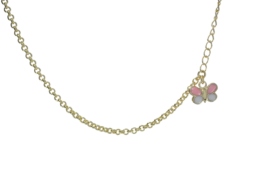 PULSEIRA INFANTIL BANHADA EM OURO, VENEZIANA LONGA 1,50mm ESPESSURA E CHAPINHA COM MENINA 24mm COMPRIMENTO